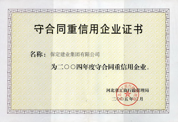 01年度省重合同守信用企業(yè)證書