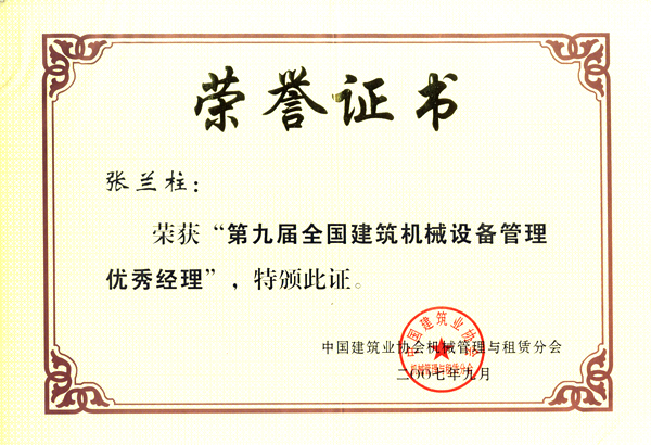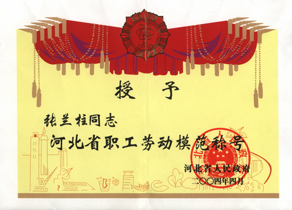 張?zhí)m柱同志以他杰出的工作業(yè)績被各級領(lǐng)導(dǎo)機(jī)關(guān)授予:全國、河北省、保定市建筑業(yè)優(yōu)秀企業(yè)經(jīng)理;優(yōu)秀企業(yè)家;優(yōu)秀共產(chǎn)黨員;優(yōu)秀黨務(wù)工作者;優(yōu)秀思想政治工作者;安全生產(chǎn)、工程質(zhì)量管理先進(jìn)個(gè)人;河北省優(yōu)秀經(jīng)理管理者;河北省建設(shè)系統(tǒng)勞動(dòng)模范;河北省勞動(dòng)模范等榮譽(yù)稱號(hào)