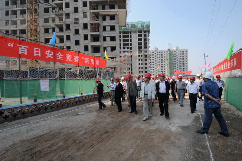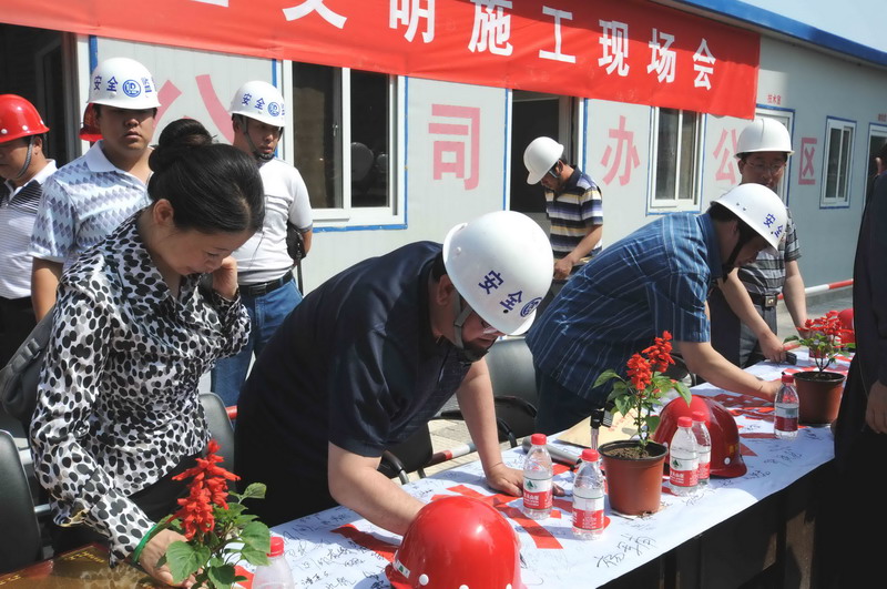 2010年6月4日,張家口住建局在我集團六公司承建的張家口親河苑小區(qū)項目部召開了建筑施工安全文明施工現(xiàn)場會,張家口市住建局局長李義、安監(jiān)站站長張芝祥及各區(qū)縣住建局、安監(jiān)站負(fù)責(zé)人,施工、監(jiān)理單位負(fù)責(zé)人共72個單位220余人出席了會議,并在我集團安全百日賽的宣傳條幅上了簽字。