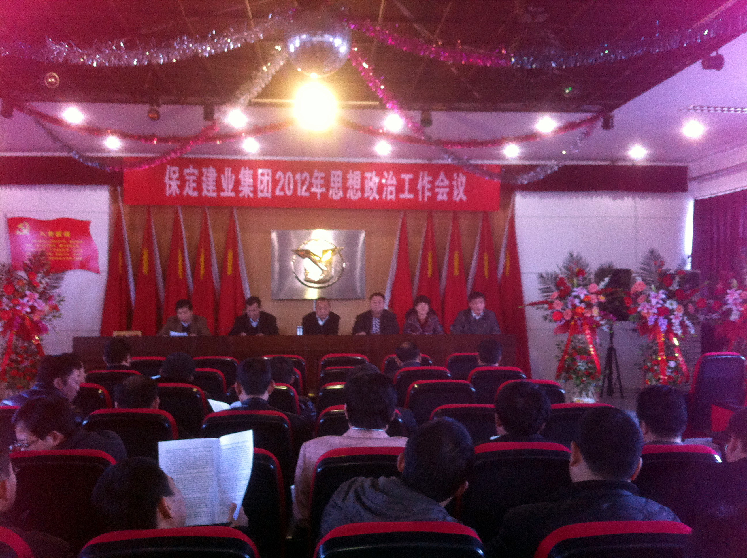 2012年3月14日,保定建業(yè)集團(tuán)有限公司2012年思想政治工作會議在莊嚴(yán)的國歌聲中拉開了序幕,會議由黨委辦公室主任馬亞軍主持,集團(tuán)各公司黨、政、工、團(tuán)、婦、武裝、保衛(wèi)負(fù)責(zé)人參加會議。