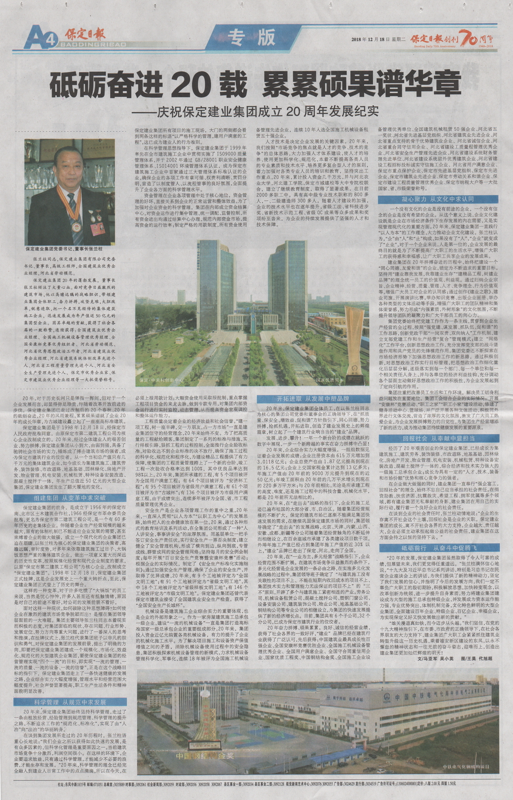 保定日報(bào)專版報(bào)道集團(tuán)公司成立二十周年